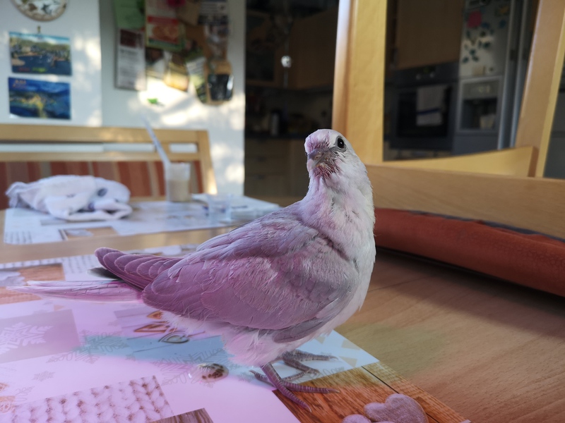 Unsere Lachtauben sind mit uns in der Familie integriert.