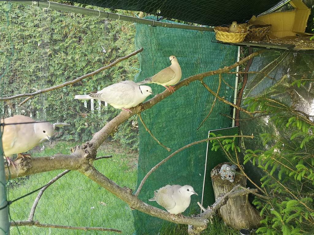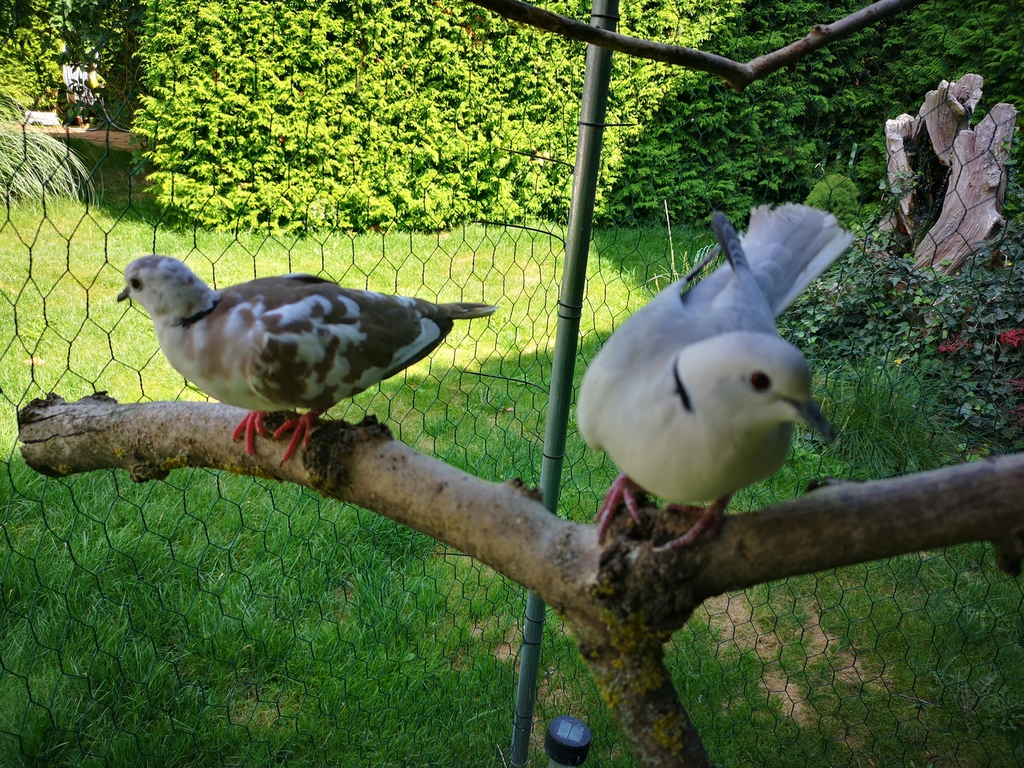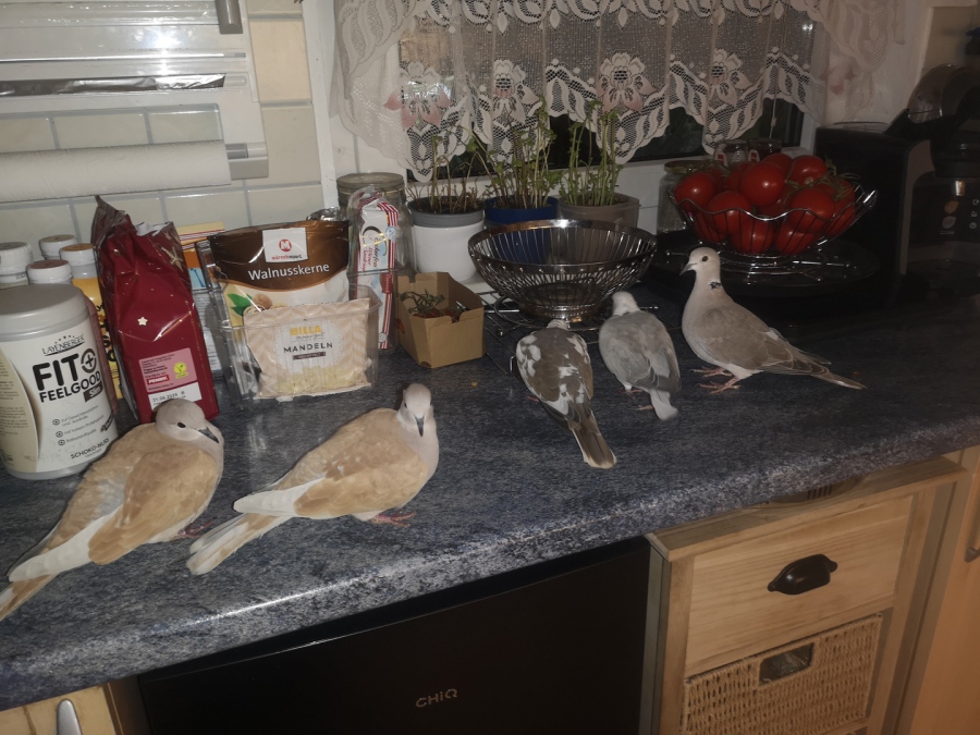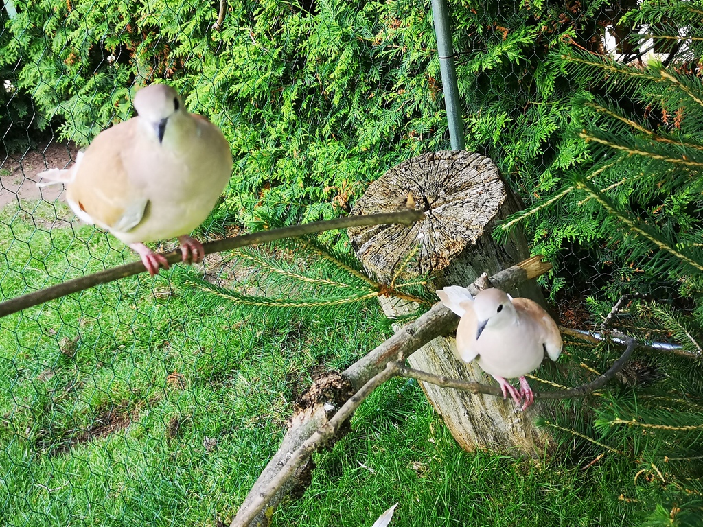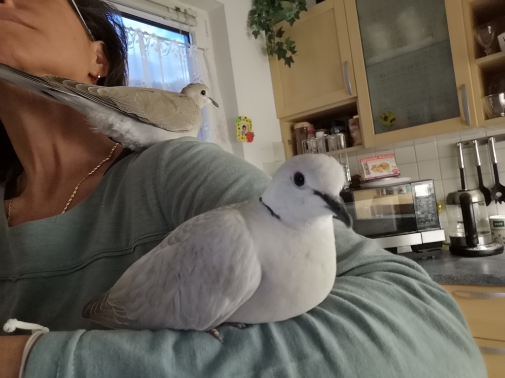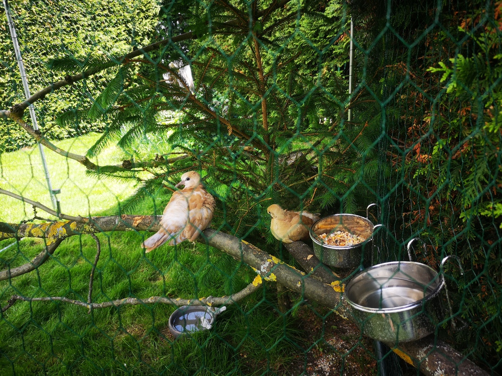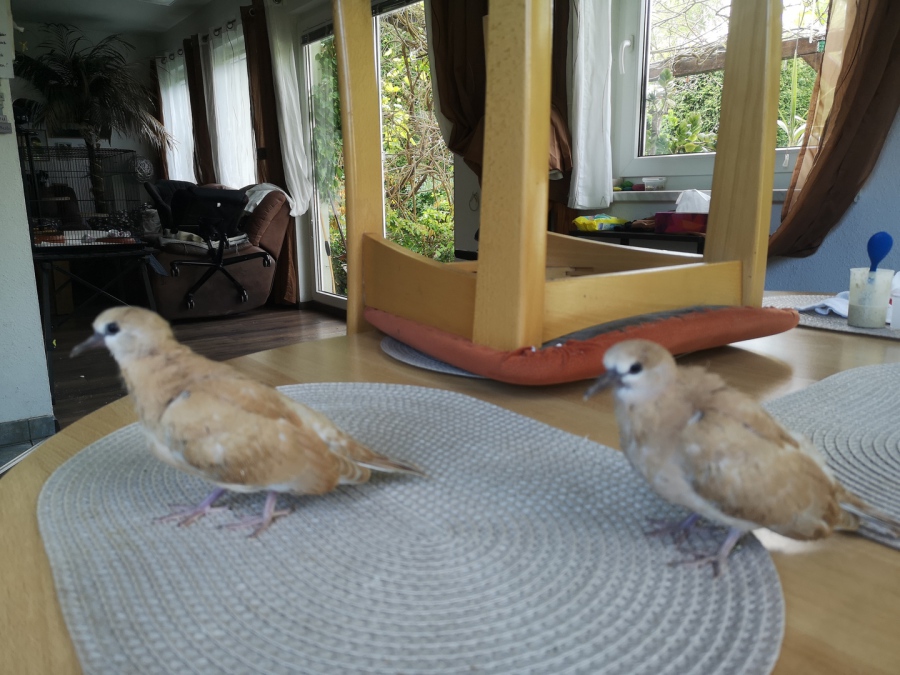 Bibi und Mädi kamen mit 10 Tagen zu uns und wurden natürlich beide mit der Hand weiters aufgezogen. Sie sind beide wunderbare , lustige Lachtäubinnen , die sehr gerne