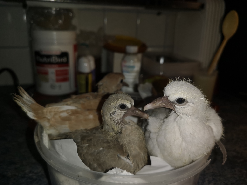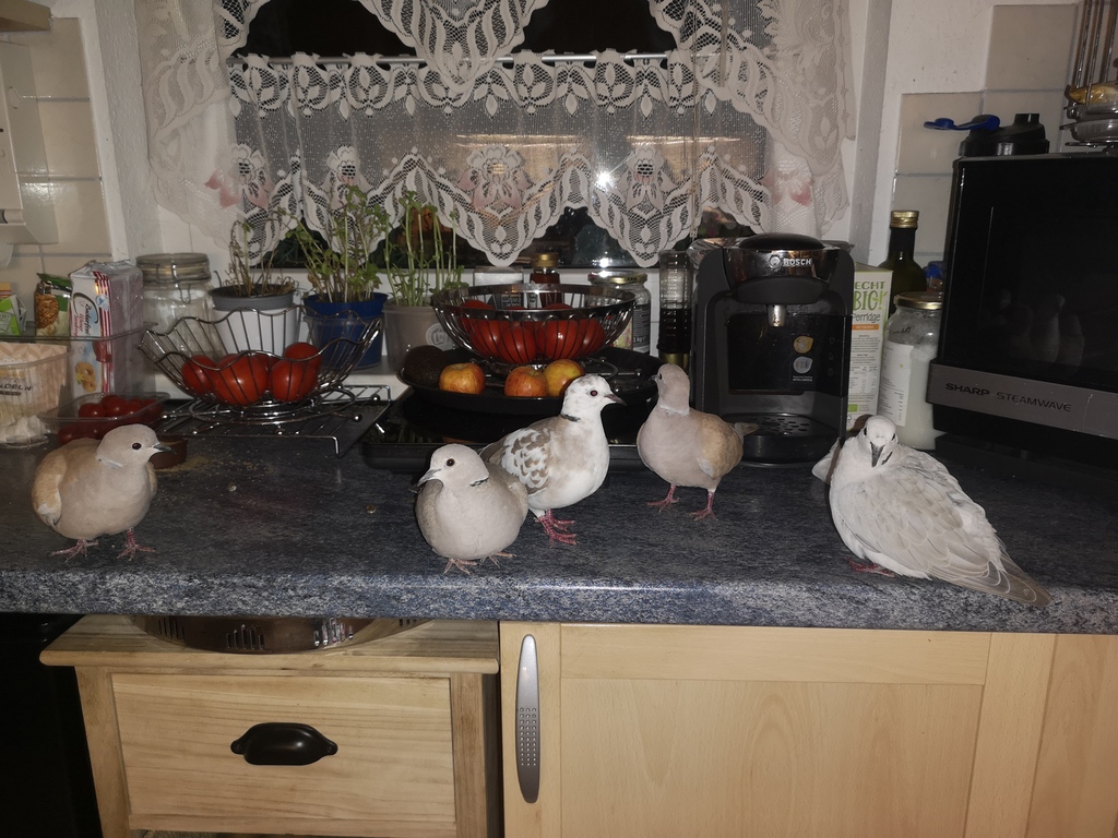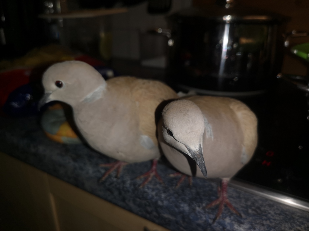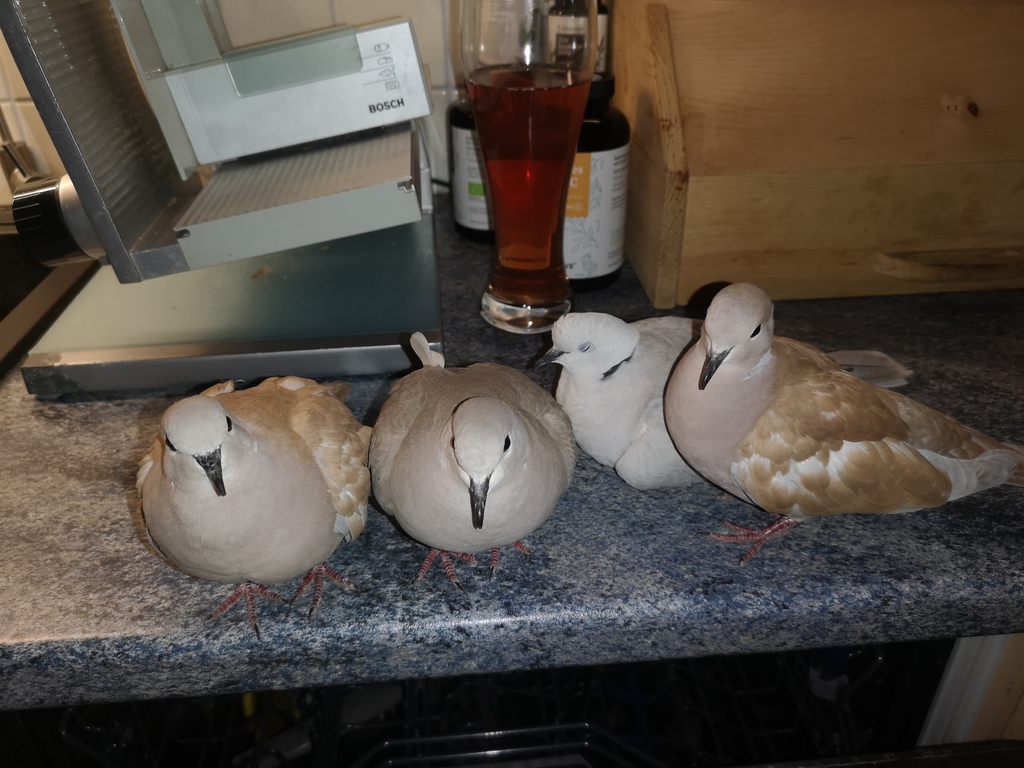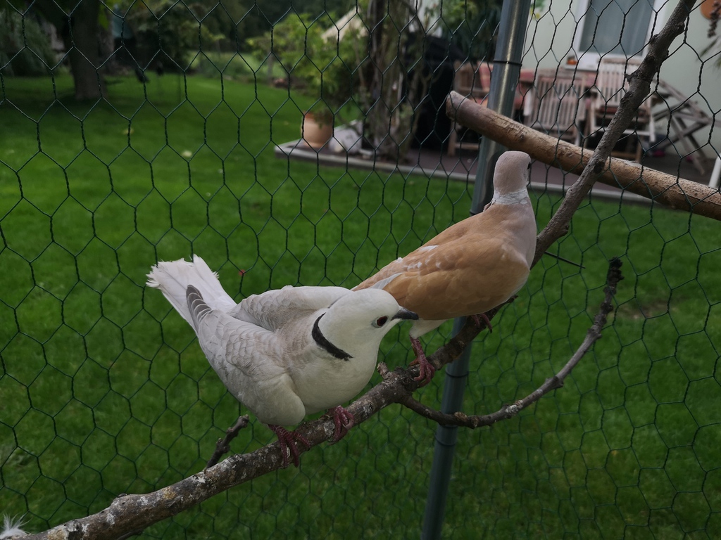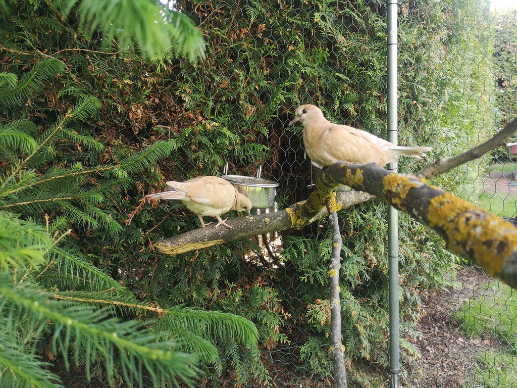 Bibi und Mädi kamen mit 10 Tagen zu uns und wurden natürlich beide mit der Hand weiters aufgezogen. Sie sind beide wunderbare , lustige Lachtäubinnen , die sehr gerne