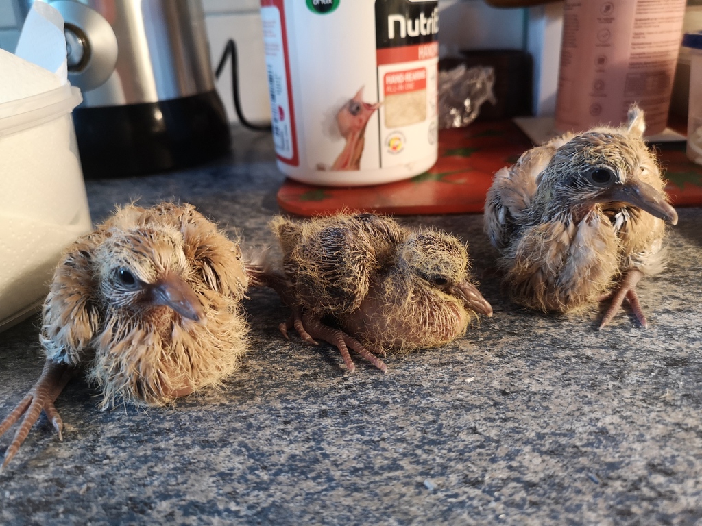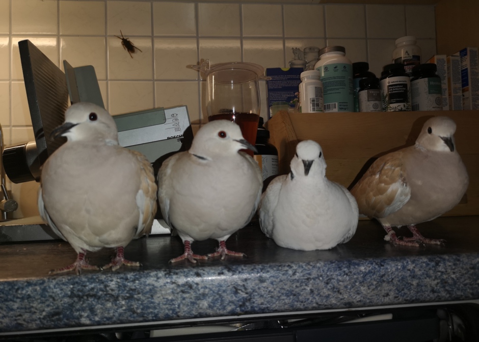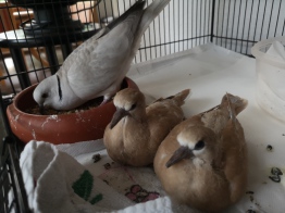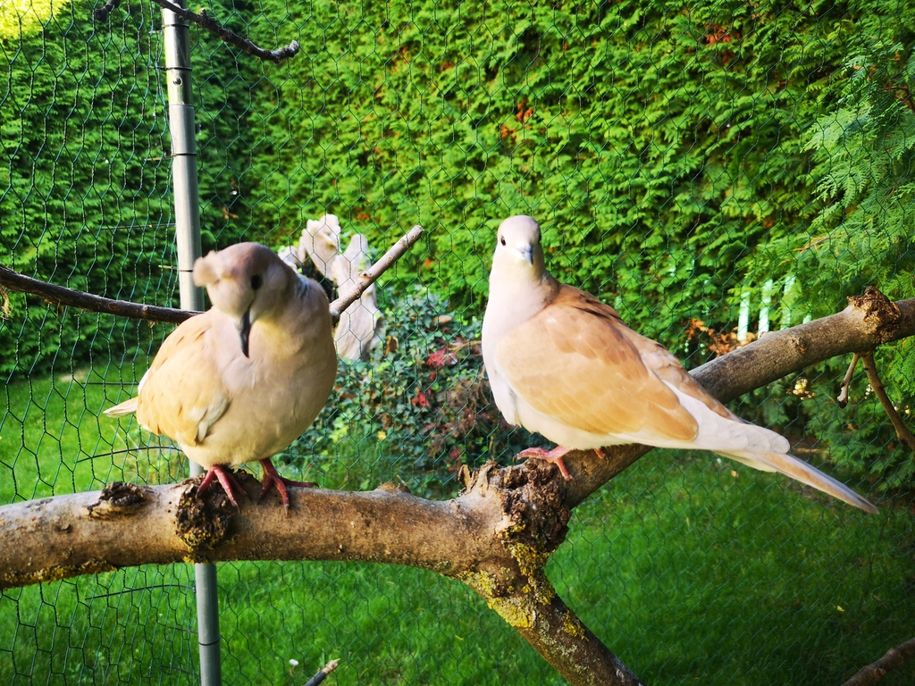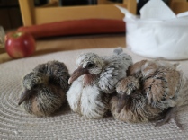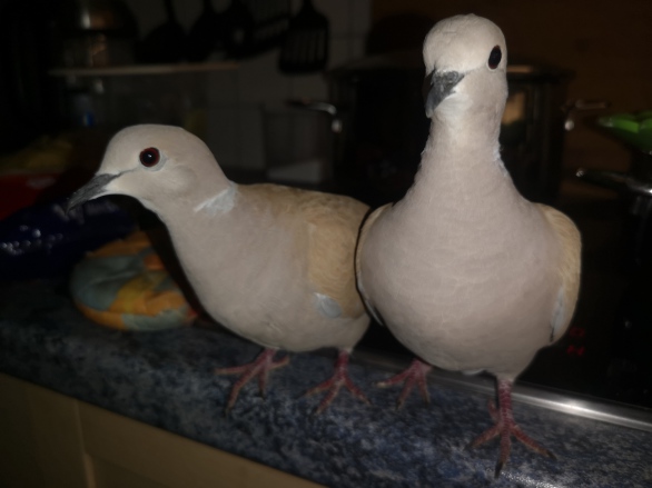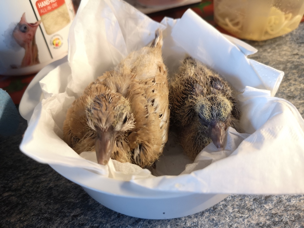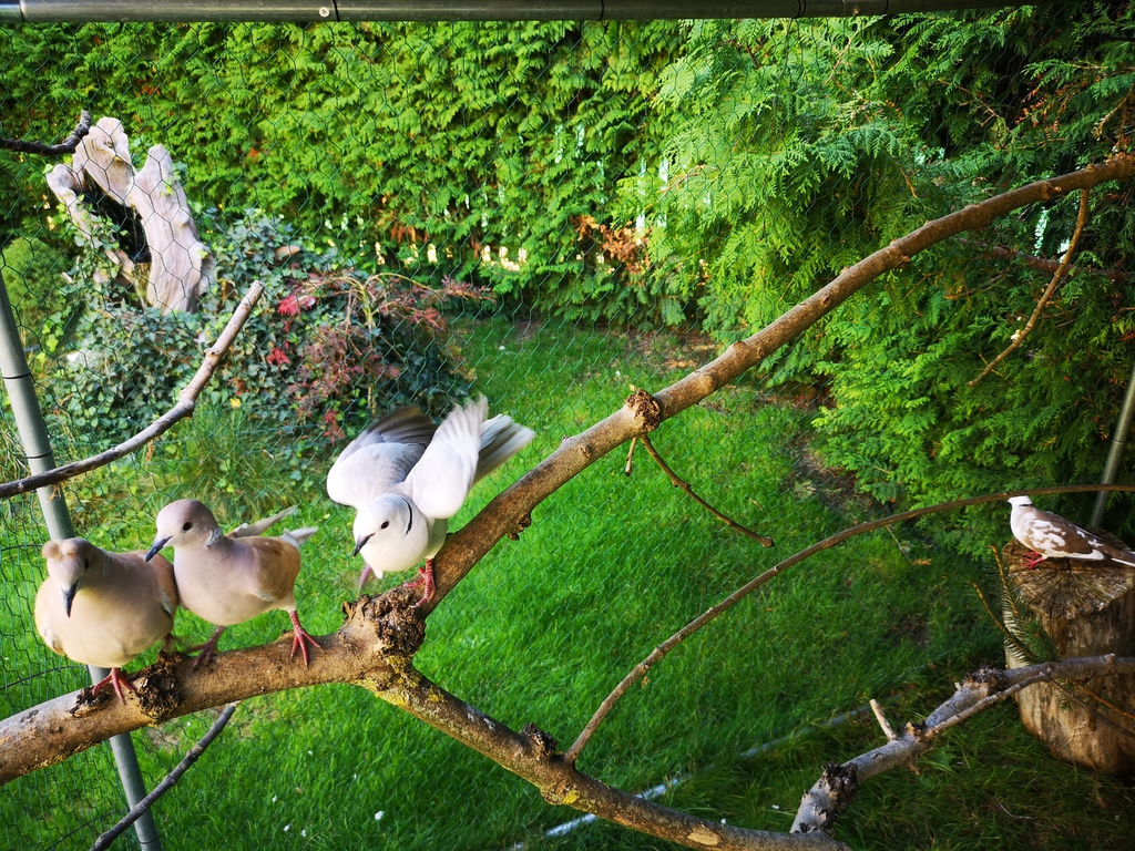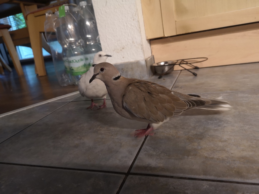 Bibi und Mädi kamen mit 10 Tagen zu uns und wurden natürlich beide mit der Hand weiters aufgezogen. Sie sind beide wunderbare , lustige Lachtäubinnen , die sehr gerne