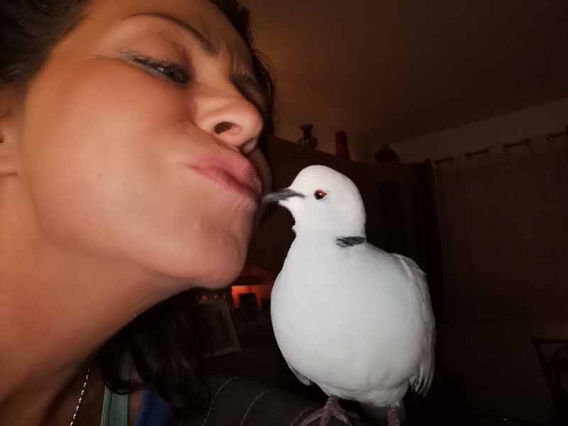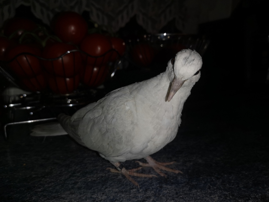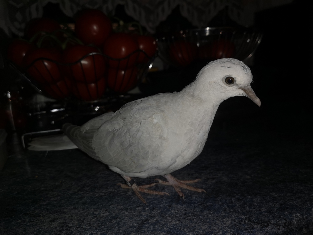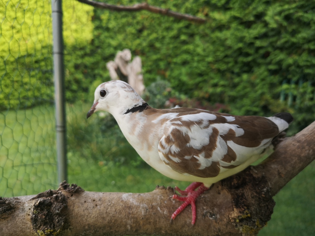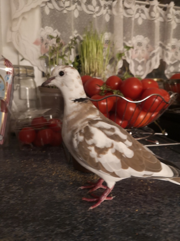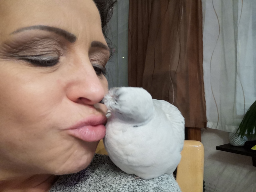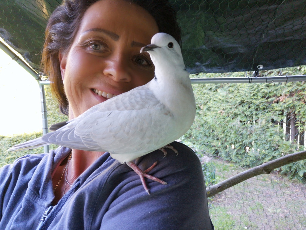 Eine sehr liebe kleine Täubin, war die Partnerin vom Smiley, war zutraulich , aber nicht ganz zahm, da sie von anderem Züchter übernommen wurde.