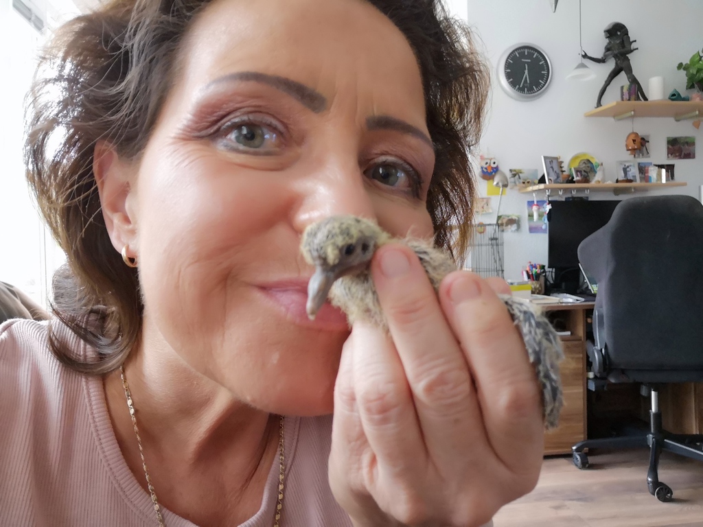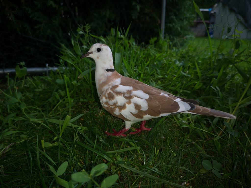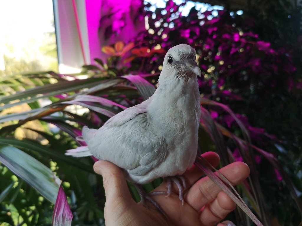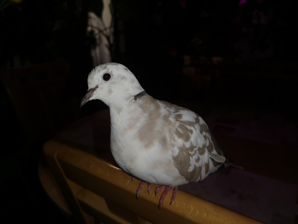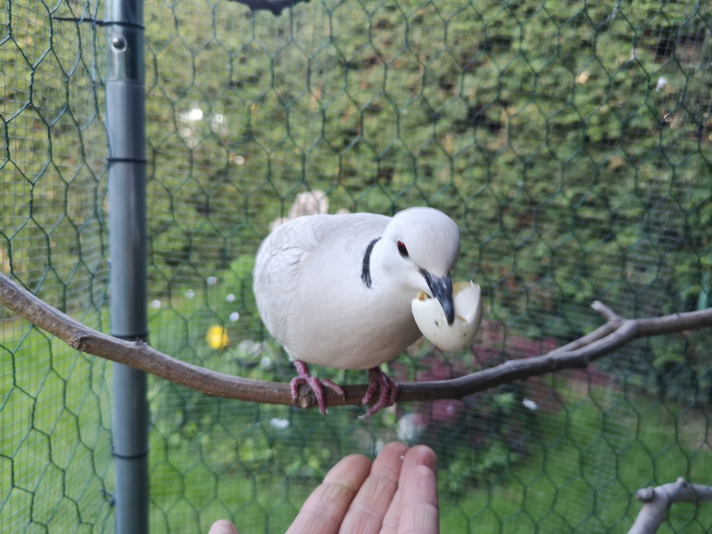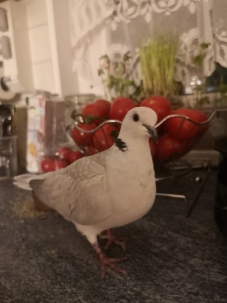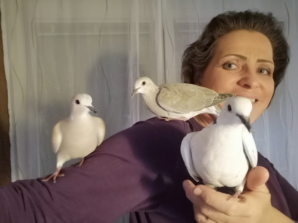 Eine sehr liebe kleine Täubin, war die Partnerin vom Smiley, war zutraulich , aber nicht ganz zahm, da sie von anderem Züchter übernommen wurde.