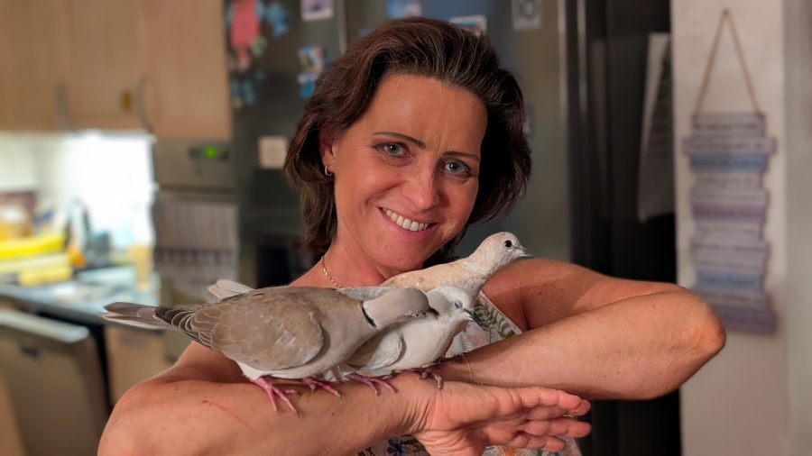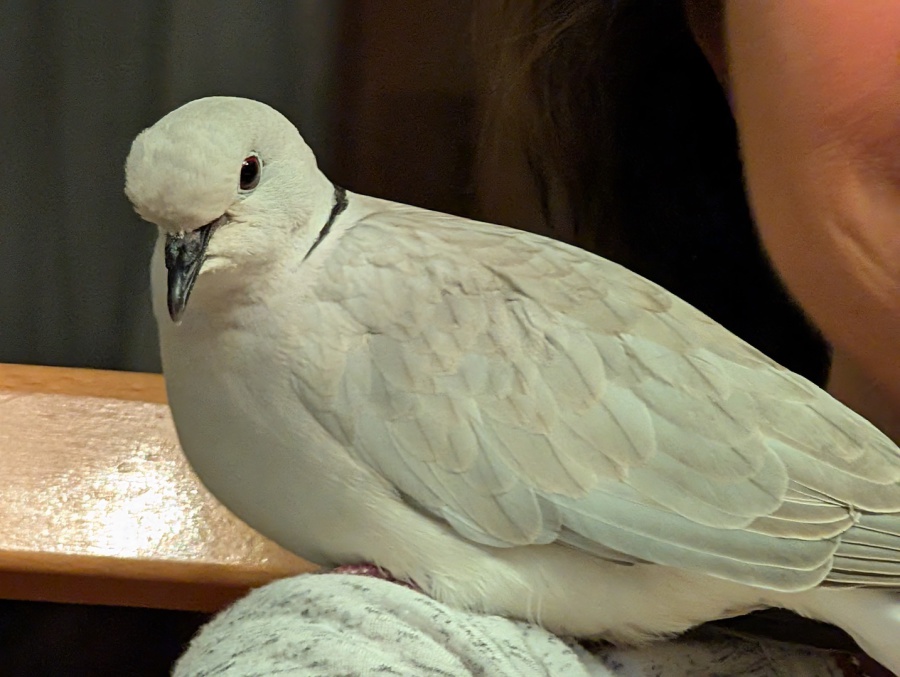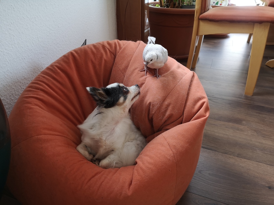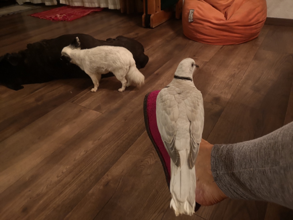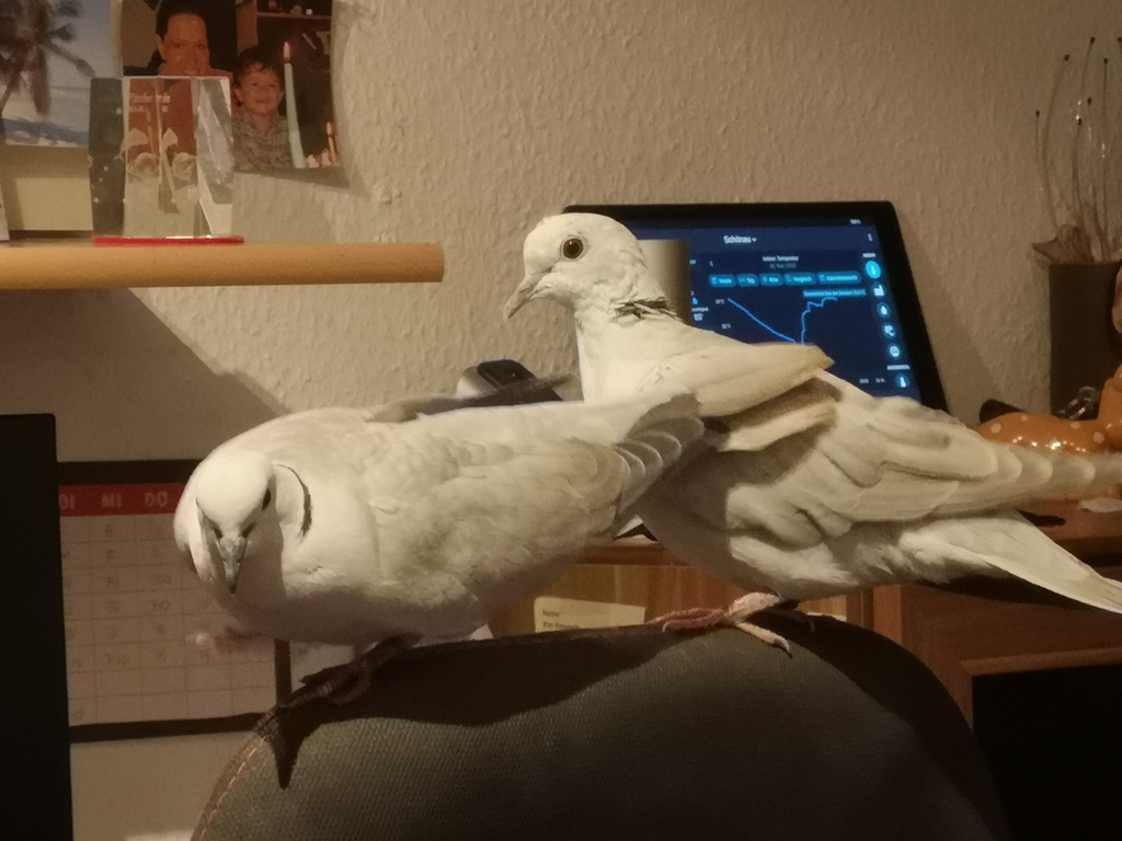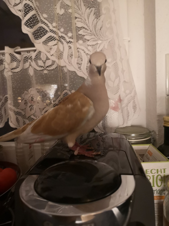 Smiley ist das herzigste Wesen ,was es in der Vogelwelt gibt. Er ist so lieb und zutraulich, Er hat vor nichts Angst, kein Staubsauger, kein Hund oder lautes Gerät kann ihn aus der Ruhe bringen. Er ist ein guter Wachvogel - er meldet - gurrt sogar in der Nacht , wenn ein Auto zufahrt und jemand zum Haus geht - oder wenn ein Fenster geöffnet wird. Er gurrt einfach immer und liebt nur mich. Alle anderen Täubinnen müssen sich hinten anstellen. Er ist einfach unbezahlbar!!!! Und ein wunderbarer Papa ,für alle seine Küken.