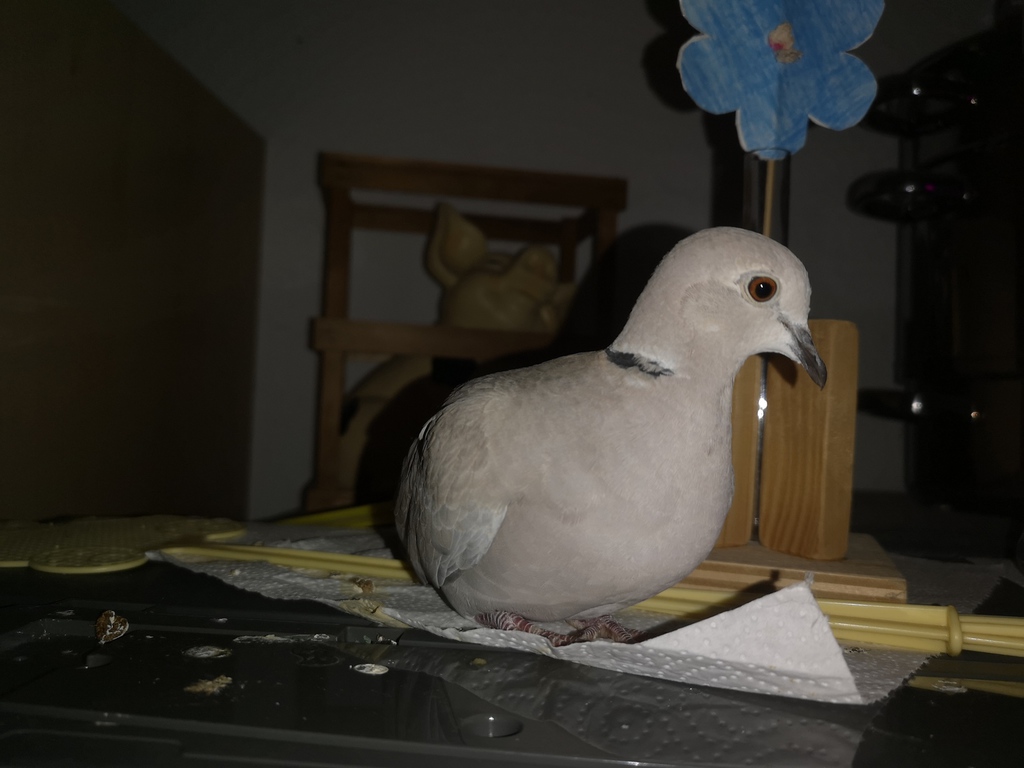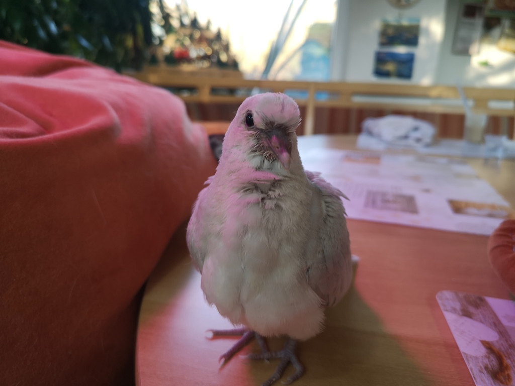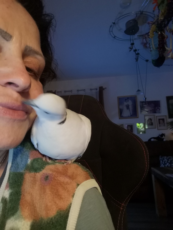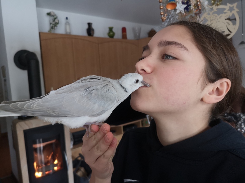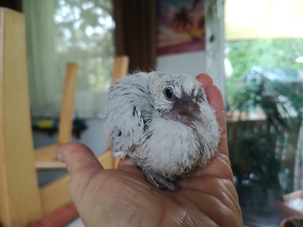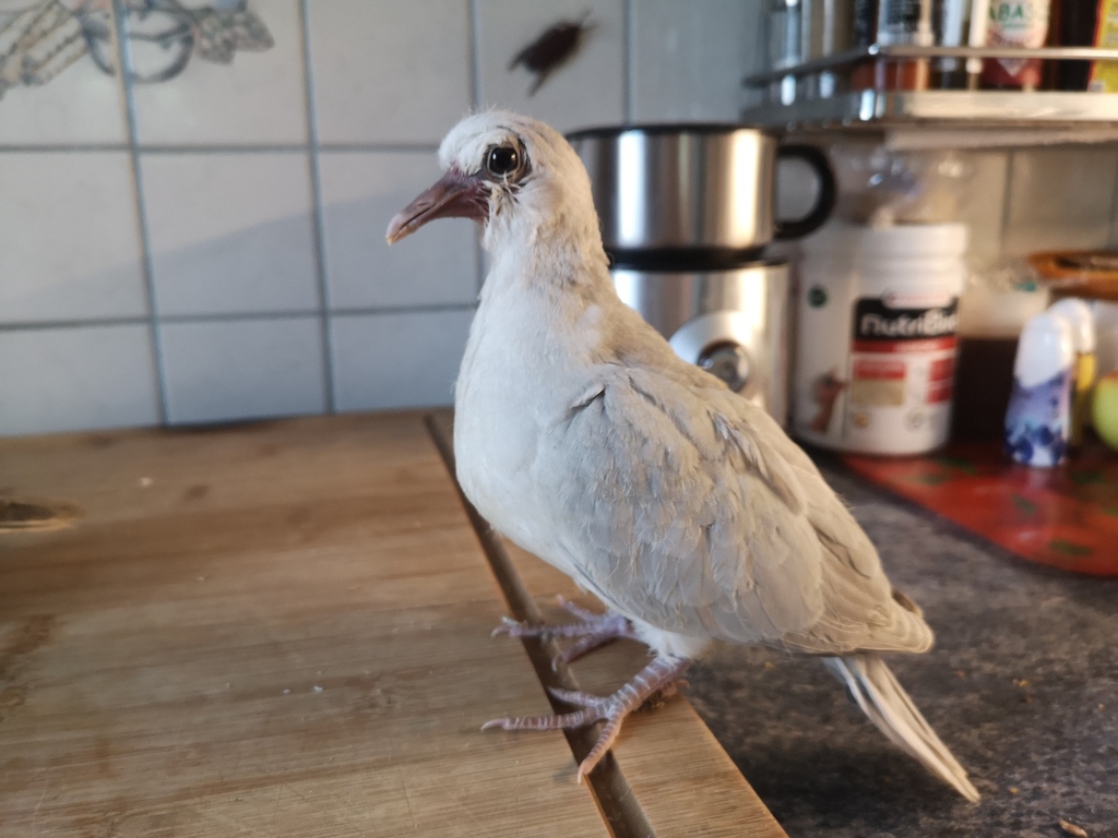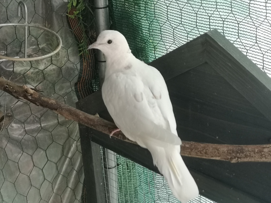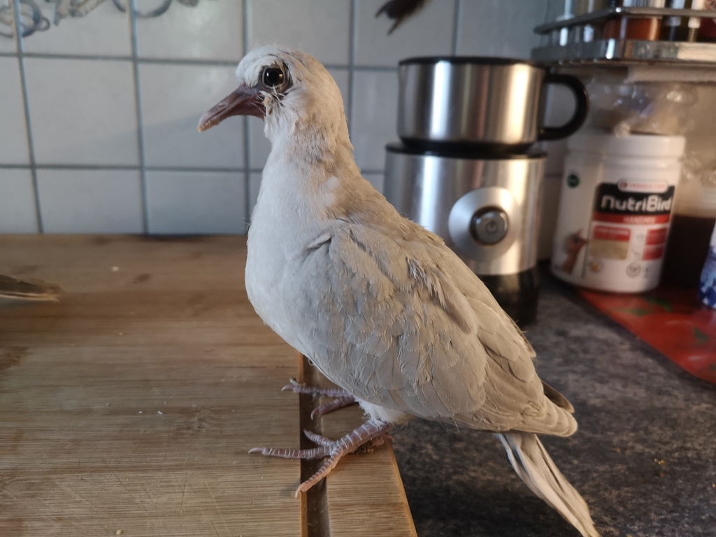 Frosty ist das Kind von Bibi und Smiley - er ist ein junger Täuber , sehr zutraulich und liebenswert - noch nicht geschlechstreif .......